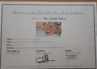 J’ai ainsi effectué 4 formations en onglerie avec BIOSCULPTURE GEL, Brillbird et Tartofraise pour le nail art afin de me perfectionner, je me suis formée au maquillage chez Sylvia TERRADE par Corine WOLF, reconnue M.O.F qui m’a transmis son savoir faire et ses astuces que j’ai plaisir à appliquer au quotidien avec le gamme SERGE LOUIS ALVAREZ qui répond également à mes critères de recherches pour leur naturalité et leur bien-faits pour la peau ! Pour compléter mon parcours, j’ai suivi une formation pour le rehaussement des cils chez Griffe d’Or avec un soin à base de kératine.